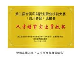 2012年獲得第三屆全國印刷行業職業職能大賽(四川賽區)選拔賽人才培育突出貢獻獎